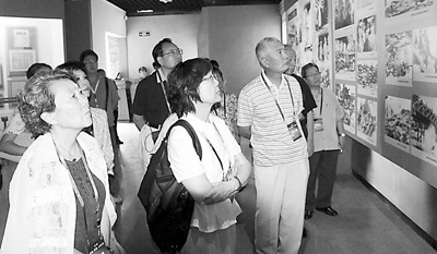 图为与会黄埔后代在上海参观淞沪抗战纪念馆。