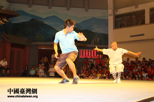 在互动表演环节,来自台湾嘉义大学学生陈逸珑和陈彦百上台进行模仿表演武术。虽然两位同学并未完整地将动作做下来,但他们勇敢登台表演、展现自身的表现,赢得大家的阵阵掌声。表演完后,陈逸珑说,自认为有一定的身体素质,但真正要按照少林武僧的要求去做,真是太难了,差距也太大了,少林武功好个厉害。