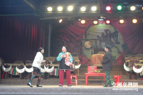 小品《拜年》宣传党的十八大惠民利民政策。(图片来源:湘西州台办)