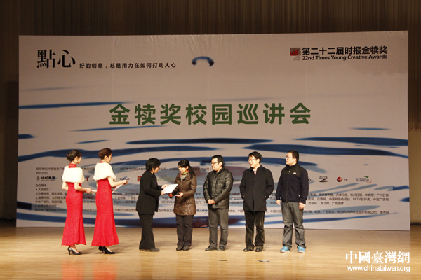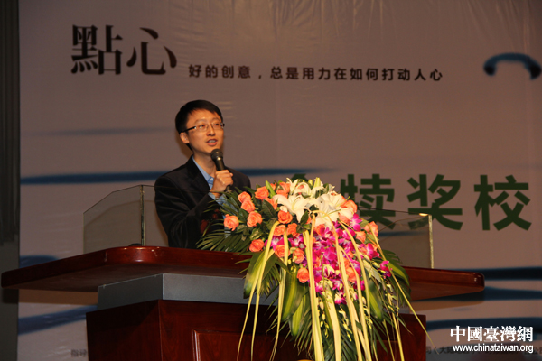 活动筹委会代表中国传媒大学广告学院杨懿老师发表致辞。(中国台湾网 张洁 摄)