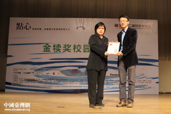 组委会为中国传媒大学颁发感谢状。(中国台湾网 张洁 摄)