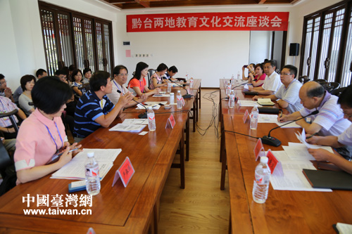中国台湾网8月28日贵阳消息 8月13日上午,“黔台两地教育文化交流座谈会”在美丽的花溪孔学堂举行。省台办成高荣处长、市台办副主任刘筑琪、台湾教育参访团全体成员、贵阳一中及北师大贵阳附小等学校的领导及教师代表们参加了此次座谈会。