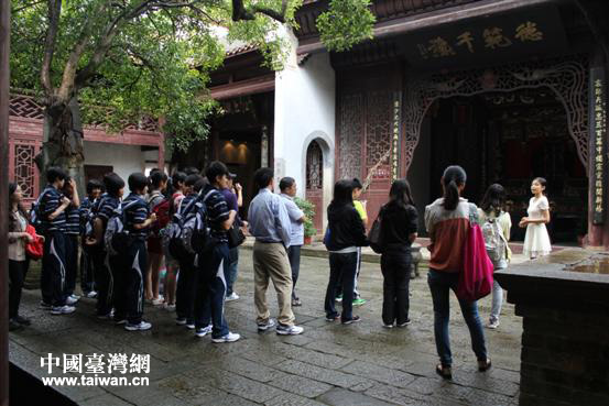 台湾青少年学生在屈子祠里探寻屈原文化。(图片来源:岳阳市台办)