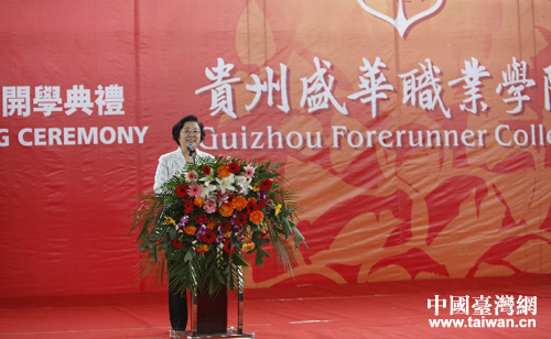 全国政协副主席、台盟中央主席林文漪冒雨赴贵州省惠水县出席贵州盛华职业学院开学典礼并发表讲话。(中国台湾网发 毕磊 摄)