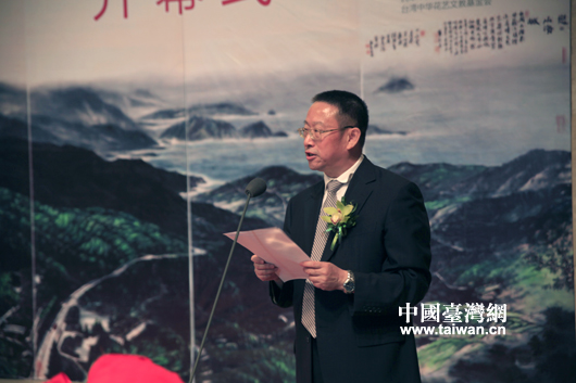 台湾著名画家黄永川书画展9月24日在北京中国美术馆开幕,周铁农在开幕式上致辞(中国台湾网 芜同 摄)