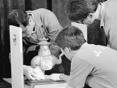台北故宫工作人员正在将北京故宫借展文物进行开箱。本报记者 吴亚明摄