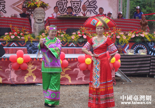 活动由飞行伞表演拉开序幕,一个个飞行伞从天而降,展现太鲁阁族梦想起飞,并以此感念祖灵为世代子孙所留下的心血家业与荣耀。宜州市刘三姐文化传习中心两位女演员也登台表演了彩调剧《刘三姐·黄媒婆提亲》片段,甜美的歌声、优美的舞姿、靓丽的民族服装以及独特的表演艺术,获得现场一片欢呼声。桂台两地少数民族一同跳民族传统舞蹈,大家手牵着手跳着百人大会舞,展现友好与盛情,