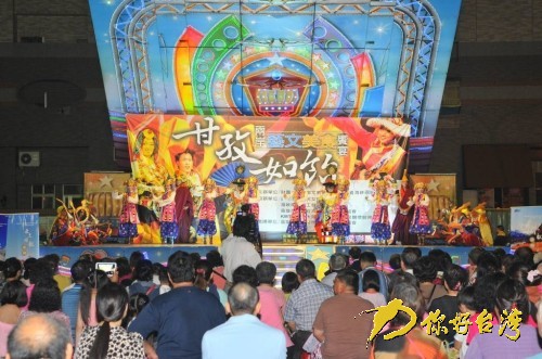 你好台湾网11月12日消息 11月9日晚,初冬阵雨中,四川省民族歌舞赴台交流团第二场演出在台湾高雄市三民区义民庙前的空地如约举行。