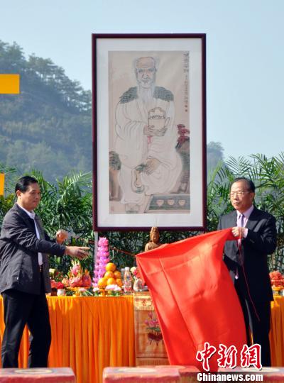 11月17日,海峡两岸茶业交流协会会长张家坤为武夷茶祖像揭幕。当日,2013中国武夷山(大红袍)国际禅茶文化节在福建武夷山举行。中新社发陈丹妮 摄