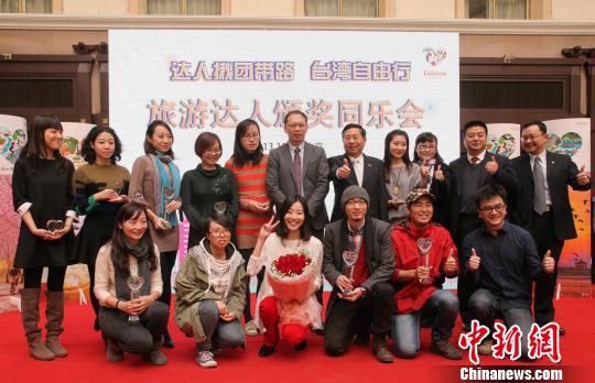 11月16日,台旅会北京办事处在北京举办“旅游达人颁奖同乐会”。根据参加“达人揪团带路台湾自由行”活动的大陆旅游达人的路书,评选出第一、二、三名与优胜奖两名、入选奖六名,共奖励七万元人民币。图为台旅会北?