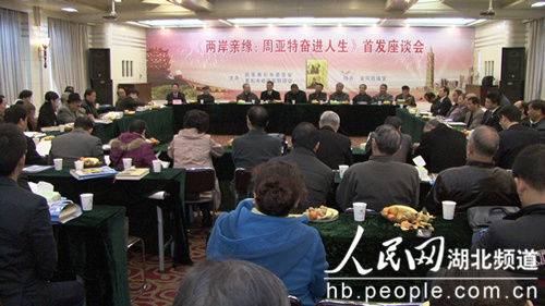 人民网武汉11月29日电 (谢雪琴)11月28日上午,由民革黄石市委员会和黄石市收藏家联谊会联合举办的《两岸亲缘 周亚特奋进人生》首发式座谈会在黄石举行。会上,宣读了民革中央副主席郑建邦和湖北省人大常委会原副主任、民革湖北省委员会原主委鲍隆清的亲笔贺信;本书主人翁周亚特先生作了发言。与会人员在座谈会上踊跃发言,对《两岸亲缘 周亚特奋进人生》一书及书中主人翁周亚特先生给予了充分肯定和高度评价。