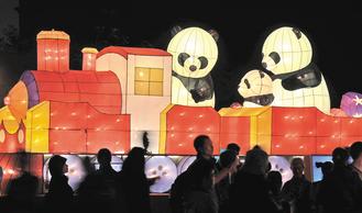 近来在台湾刮起一股旋风的大熊猫宝宝圆仔,也和主灯“飞跃阿骏”一起“闪亮登场”。