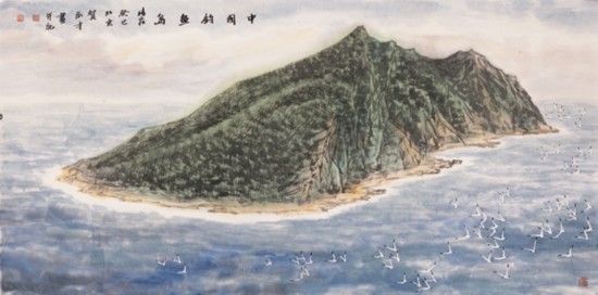 书画展中展出的作品:中国钓鱼岛 作者:贺成才