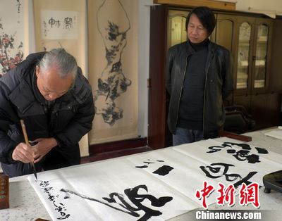 图片1为八大山人纪念馆馆长王凯旋挥毫。