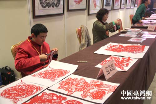 艺术家为现场嘉宾展示精湛的剪纸技艺。(中国台湾网 马一娜 摄)
