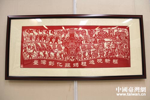徐阳剪纸作品《台湾彰化县妈祖绕境祈福》。(中国台湾网 马一娜 摄)