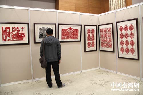现场嘉宾参观剪纸艺术展。(中国台湾网 马一娜 摄)