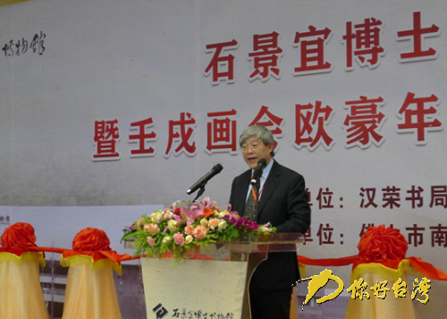 石景宜博物馆馆长、石景宜博士次子石国基在开幕仪式上讲话。(你好台湾网 图)