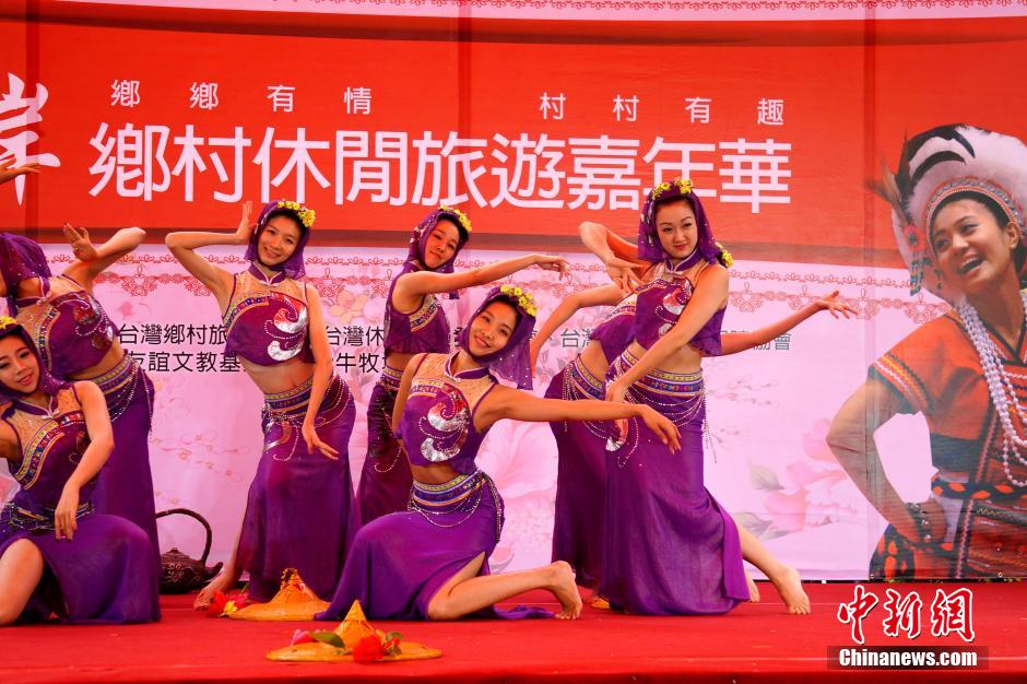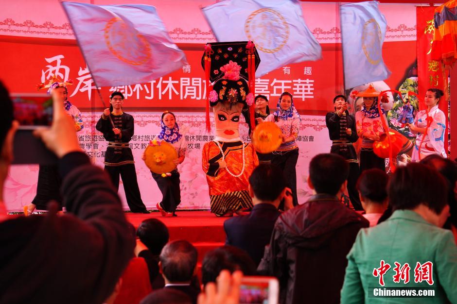 4月1日,一场名为“两岸乡村休闲旅游嘉年华”的活动在台湾苗栗飞牛牧场上演,吸引了两岸乡村旅游业者、旅游商品企业及两岸游客等1000多人参与。福建的惠女风情、大鼓凉伞、提线木偶、歌仔与台湾布袋戏、电音三太子等富有两岸特色风情的乡村民俗表演逐一登场,现场叫好声不断。(中新社发 李志全 摄)