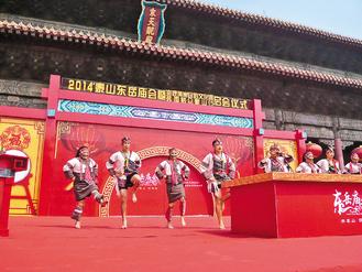 值得一提的是,台湾苗栗泰安乡由于与山东泰安市同名,两个地方政府多年来已经建立友好关系,所以今年苗栗泰安乡乡长柯武勇特别组团前来参加,并且还有泰安乡的泰雅族上台表演民族舞蹈,赢得全场喝采。