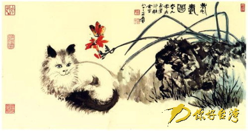展出作品:张大千《耄耋图》国画(你好台湾网 图)
