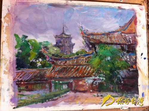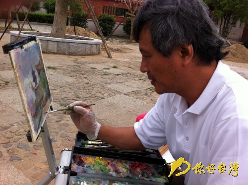 “每到一地旅游,别人用相机拍照,他却坐下来写生画画。”在侯先生画画写生时,妻子在一边守候着。她说,候先生去旅游都是带着油画板,每到一处就以写生的形式纪录,几十年来,除了在台湾各地游览写生,还曾到欧洲和东南亚一些国家和地区写生画画,已经到各地画了一千多幅写生画了。