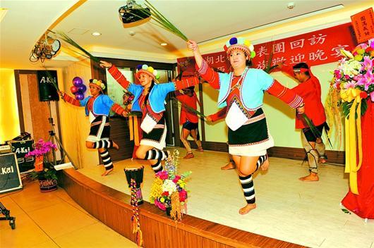 上图:台湾少数民族同胞载歌载舞,欢迎远道而来的湖北朋友。