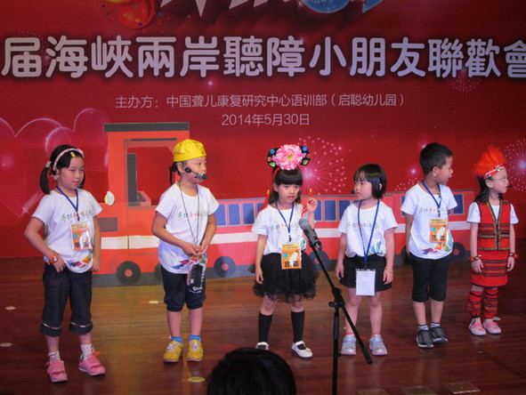 图为是5月30日在北京中国聋儿康复研究中心举行的首届海峡两岸听障小朋友联欢会现场,小朋友们在表演节目。(新华社记者 查文晔 摄)