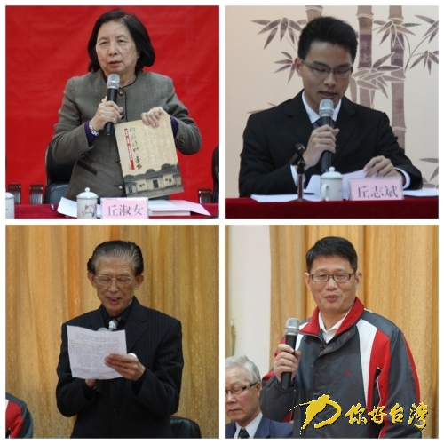 “作为后人,我们铭记逢甲公的遗愿,努力学习,牢记当代中国青年的历史使命,投身社会实践,为国家民族的富强和力促两岸和平统一作出自己的努力。”广东省丘逢甲研究会联络办公室主任、丘逢甲嫡曾孙丘志斌介绍了研究会近年来开展的学术研究、纪念活动等情况。台湾抗日志士亲属协进会会长、丘逢甲侄孙女丘淑女则介绍了丘逢甲、丘先甲兄弟抗日护台的英雄事迹,并分享、赠送了其近期在台湾出版的相关书籍和画册。