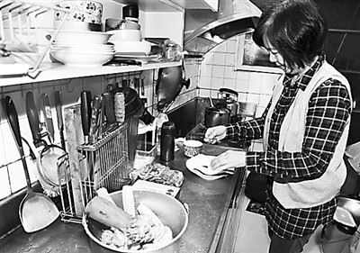 台北:台北市民钟克臣的太太在家中清洗食材,准备餐食(2月14日摄)。吴景腾摄(新华社发)
