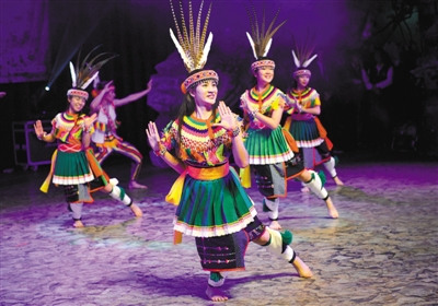 昨天,台湾原住民文化乐舞团的演员们表演舞蹈《迎宾舞曲》。当天,海峡两岸(宁夏)经贸文化合作交流活动周系列活动“两岸情、民族风”宁夏、台湾两地少数民族文艺联谊会在花莲原住民族文化馆隆重上演,来自宁台两地的演员们表演了回族传统舞蹈、花儿、原住民文化乐舞等节目,为当地民众献上一场民俗艺术盛宴。