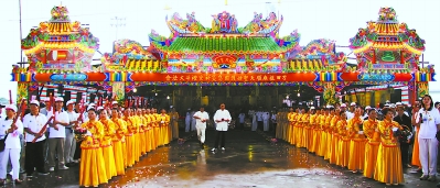 陈靖姑金身巡游台湾成为台湾民间最隆重的节日,台湾民众在台北市设立宏伟而隆重的行宫欢迎陈靖姑金身的到来,成为当地的一道风景线。杜新华 摄