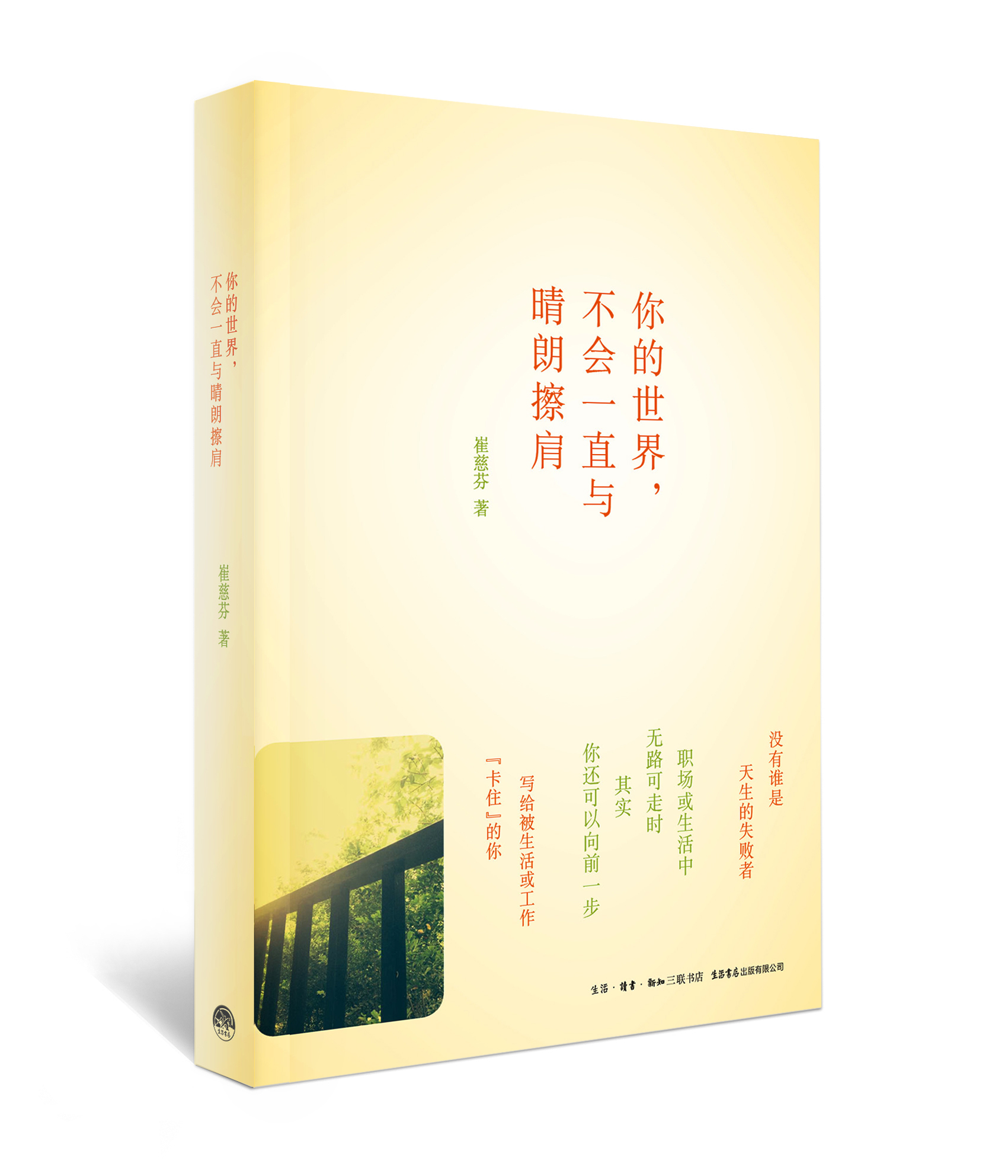 在《你的世界,不会一直与晴朗擦肩》中,崔慈芬用40篇文章、60个观点、100个人生故事,着意为青涩的大学生、初入职场的新鲜人、打拼多年的社会人以及对生活常生无力感的现代都市人,精心调制一味清新怡人的“醒脑汤”。“多走几步,少走几步,人生境遇完全不同。……有时换个节奏生活,换个习惯做人做事,人生的风景会截然不同。因为,你的世界不会一直与晴朗擦肩。”在书的开篇,崔慈芬如是写道。她坦言,这本书是“写给被生活或工作‘卡住’的你”,旨在分享职场和生活上的新观点,传达一种正能量:“无路可走时,其实,你可以向前一步”。该书由生活·读书·新知三联书店、生活书店出版有限公司出版。