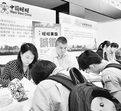 与此同时,台湾的相关部门也积极帮助陆生就业。不久前,首场由私立大学校院协进会与海基会合办的“2015大陆台商菁英招聘会”在海基会大楼举行,台塑集团、可成科技、昶辉集团、臻鼎科技、天津台商协会、苏州台商协会等29家台商、台协参与,有企业开出含津贴年终百万年薪的条件,吸引数百位陆生与台生参加。