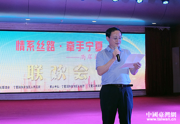 由中华文化联谊会和宁夏回族自治区人民政府共同举办的“情系丝路·牵手宁夏——两岸文化联谊行”大型文化交流活动今天在银川圆满落幕。图为文化部港澳台办副主任鲁雁飞在当天的闭幕联谊会上致辞。(中国台湾网 普燕 摄)