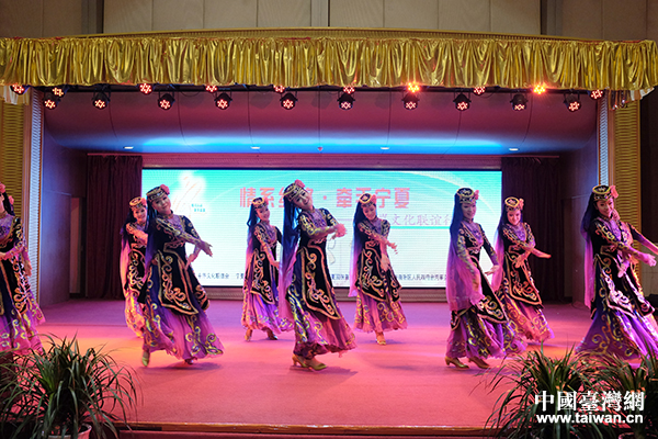 闭幕式随后举行了两岸联谊会,图为宁夏演绎集团歌舞剧院表演民族舞蹈《阿色俩目》。(中国台湾网 普燕 摄)