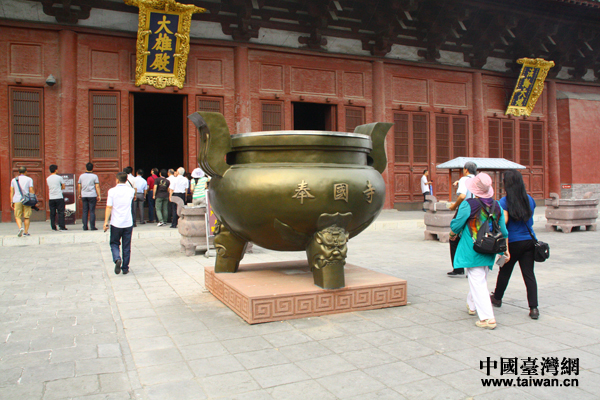 8月18日,“第14届辽宁台湾周”在锦州市拉开帷幕。图为参会台湾嘉宾参访锦州义县奉国寺大雄殿。(中国台湾网 王怡然 摄)