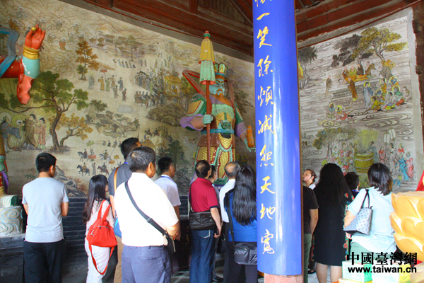 8月18日,“第14届辽宁台湾周”在锦州市拉开帷幕。图为参会台湾嘉宾参访锦州义县奉国寺壁画。(中国台湾网 王怡然 摄)