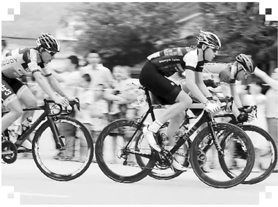 2015第六届环鄱阳湖国际自行车大赛近日在江西上犹县开赛。这次比赛共有来自28个国家和地区的126名车手参赛。经过激烈角逐,来自中华台北亚塔骑高士特职业车队的卢绍轩以1小时54分的个人总成绩获得上犹首站冠军,中华台北前劲洲际车队的彭源堂摘取冲刺王,最佳大中华仍由卢绍轩获取。图为车手骑行在该县南河湖畔。 任江华、吴 峻摄(人民图片)
