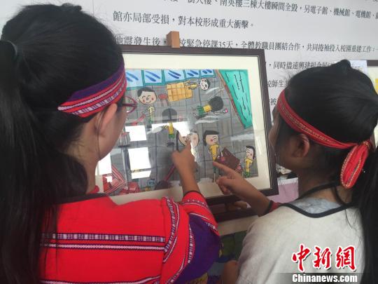 南投县小朋友在参观、浏览作品。 汪恩民 摄
