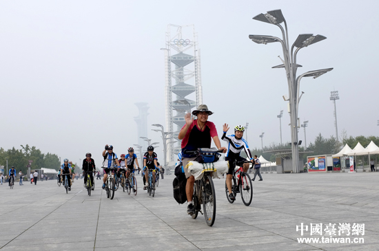 中国台湾网9月24日北京讯(记者 普燕) 下午四点,台湾青年腾飞达自北京昌平西关环岛体育馆出发,一路向南,经过一个多小时、35公里骑行后,最终到达国家体育场,为自己1.2万多公里行程的“丝绸之路——马可波罗骑行之旅” 画上圆满句号。