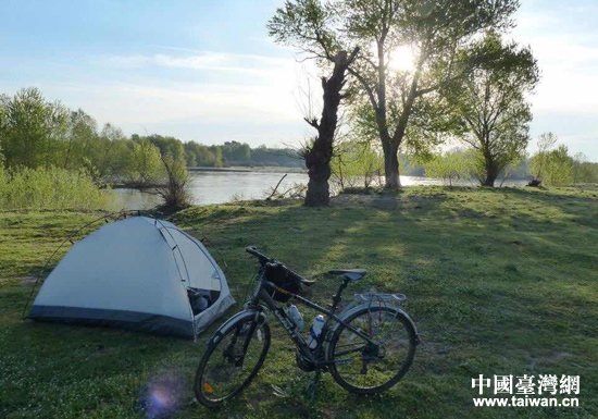 一个人骑行路上湖边扎营。(中国台湾网发)