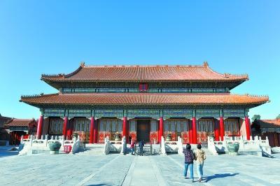 修缮一新的故宫慈宁宫在蓝天的映衬下更显巍峨,工作人员为即将到来的开放做最后的准备。今日,故宫博物院迎来成立90周年院庆。本报记者 孙戉摄