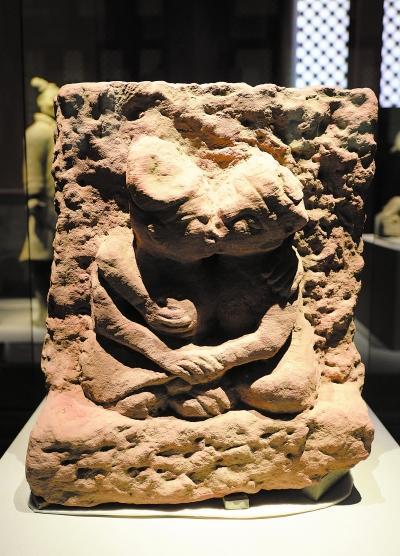 慈宁宫雕塑馆展厅里的东汉男女相拥石像。本报记者 李继辉摄
