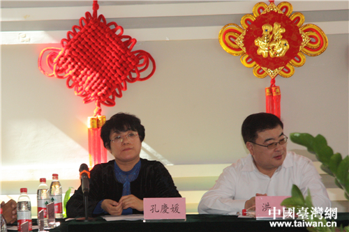 通州区台办主任孔庆媛(左一)、通州区海外联谊会会长洪波(右一)。(中国台湾网 段雯婷摄)