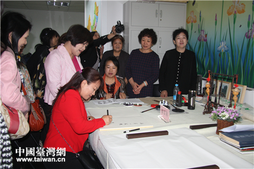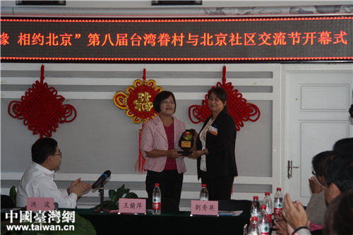 台湾高雄市新加昌社区与北京通州新通国际社区互赠礼物。(中国台湾网 段雯婷摄)