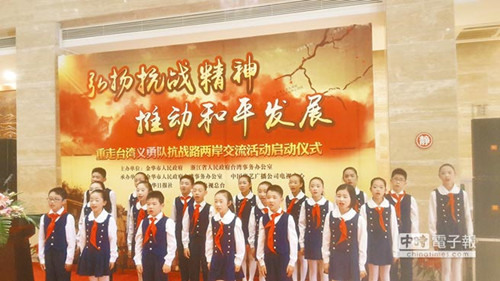 大陆少年合唱团献唱抗日歌曲。(图自台湾“中时电子报”)