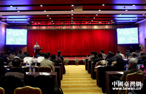 《丘逢甲传》、《罗福星传》作者之一、徐博东教授介绍写作历程。(中国台湾网 普燕 摄)