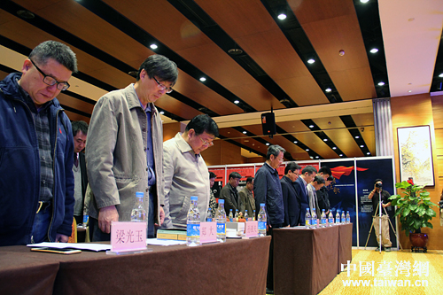 仪式一开始,所有与会人员为抗日战争牺牲烈士默哀三分钟。(中国台湾网 普燕 摄)