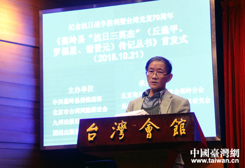 21日下午,《蕉岭县“抗日三英杰”传记丛书》在北京台湾会馆举行首发仪式。(中国台网 普燕 摄)